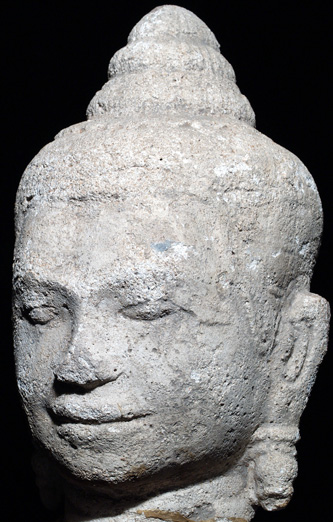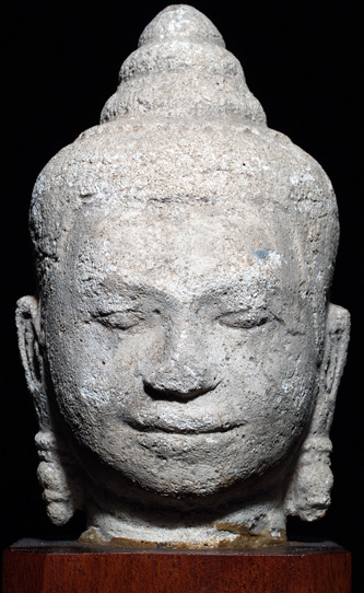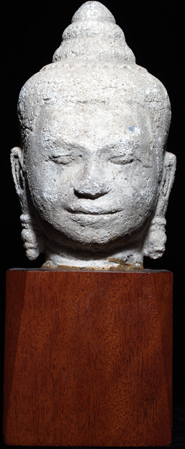 The real deal- a beautiful, high quality, and large Khmer Buddha or Bodhisattva head. It is carved out of a soft white stone. It comes out of an estate which was collected long ago and has been in storage for over 35 years. The collector was a gentleman in Air America (CIA) who lived in East Thailand for many years during the late 1960's and 70's, and who shipped a large amount of stuff back when he returned- most of it sat in storage until his estate was disbursed 2 years ago. I was fortunate enough to purchase a group of items which included many fabulous items including this head. It is approx 12 inches tall on the base, and 7.5 inches tall for the head only, and roughly 5 inches wide. There is wear as can be seen in the photos, but no repairs that I can see. Extremely sweet face- far superior to almost all the fakes, and the vast majority of the authentic ones out there. A valuable and sought after item. I've seen far lesser pieces sell for twice the price of this one.