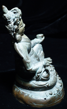 Fantastic, very early Jambala or related deity. 14/15thC or possibly a little earlierearlier. Sculpted and cast in a delightful folk style. Base has been pushed in, but it may sill have never been opened. There is something inside. Very special, one of a kind. Sits 4 and 1/8 inches tall.
