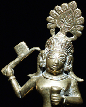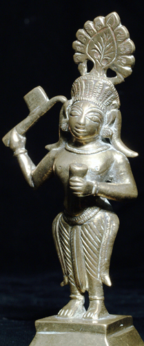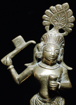 Lovely Indian Bronze deity. Far finer than the usual- the quality of the patina and overall feel give this piece a special power. It almost glows in the dark. 4 and 3/8 inches tall.