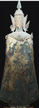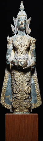 Large Mid-19thC Rattanakosin Buddha- well cast example with medicine bowl. Stands over 20.5 inches tall including the attached base. Very nice!