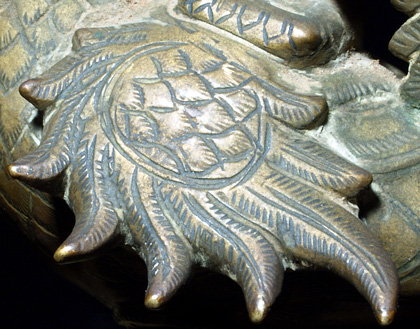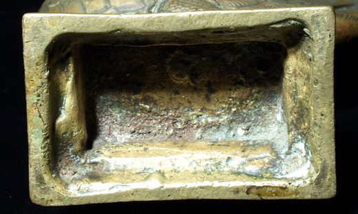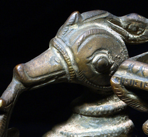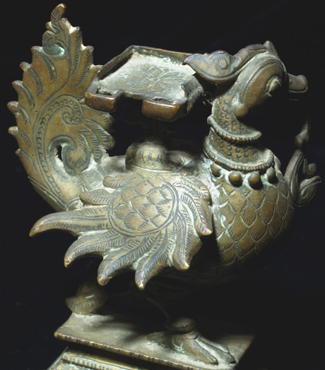 Very fine bronze bird (peackok?) in the form of the base for a small Hindu deity. Beautiful sculpture!A bit over 4 inches tall by 3 inches wide.
