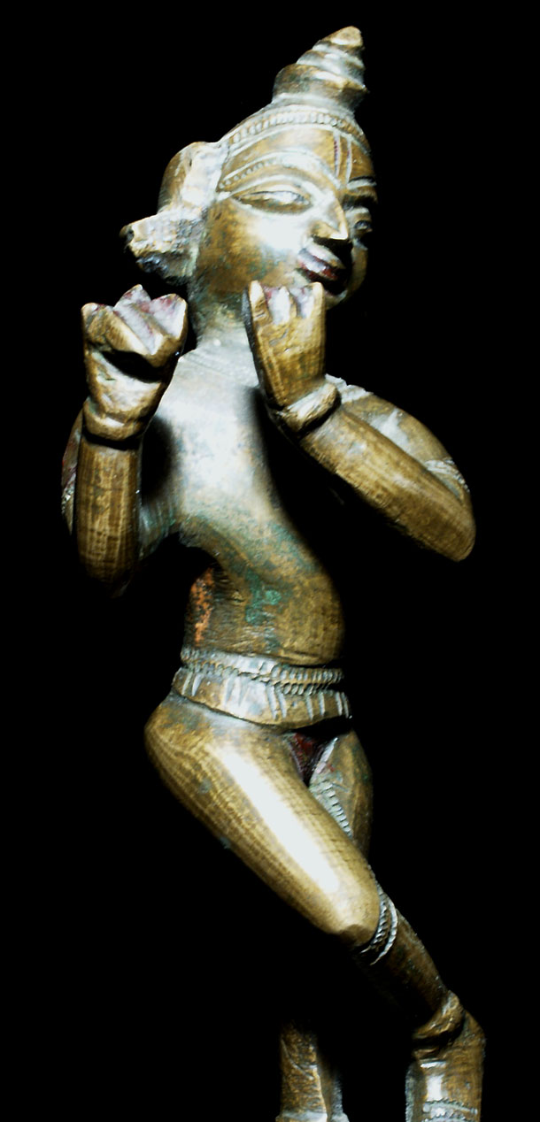 Very nice 19th C Krishna. Solid cast. Traces of red polychrome. and is 5.75 inches tall