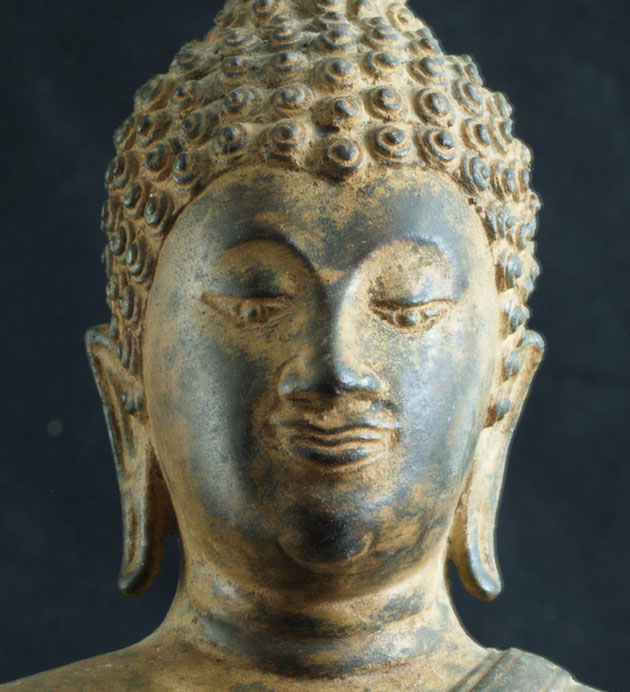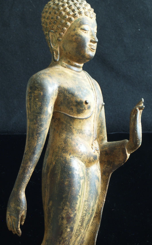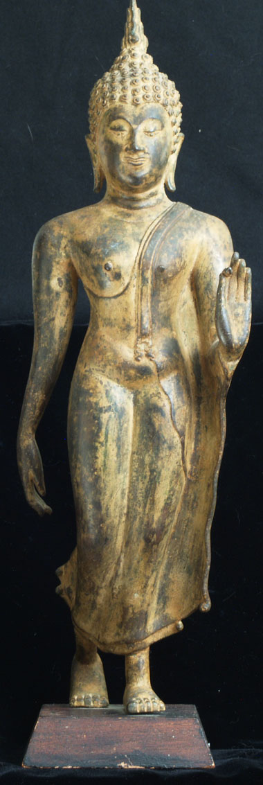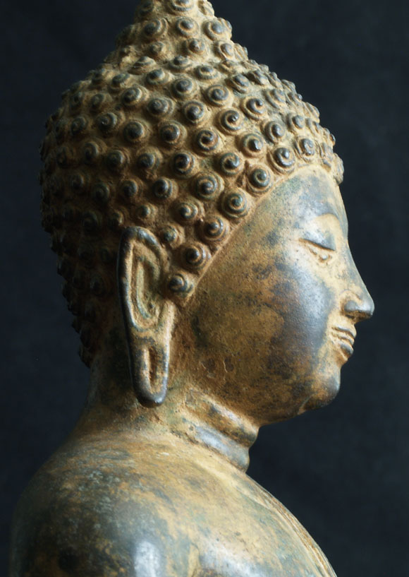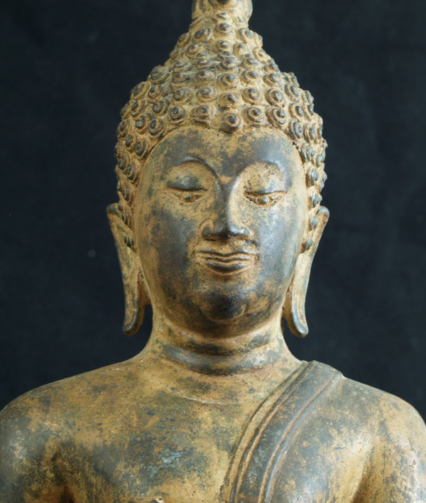 Outstanding 19thC Sukothai Revival wax cast bronze Buddha- This is not a copy- it is an original made in the 19th century when there was a revival of this style- probably during the period of Rama V (the King and I King). This is an exceptional example, a very good size at just over 16 inches tall.