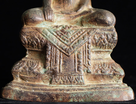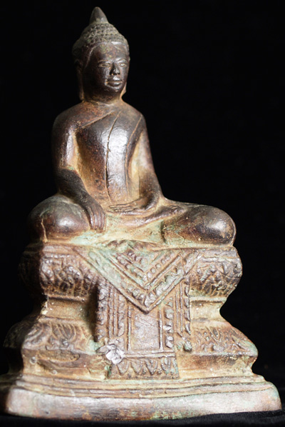 Wonderful Cambodian Bronze Buddha- great face, special base. Excellent casting, very good patina, extremely hard to find like this.Sits about 5.5 inches tall.
