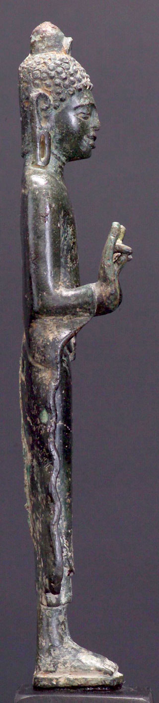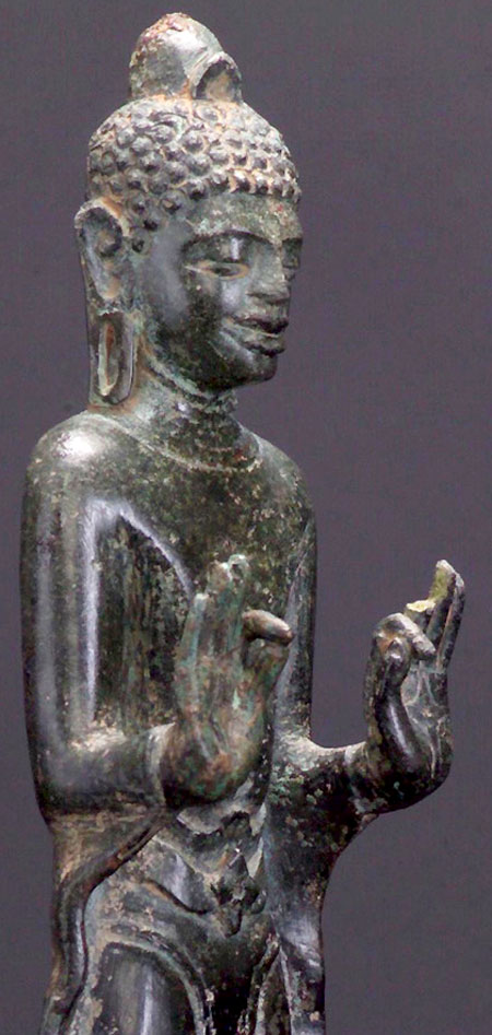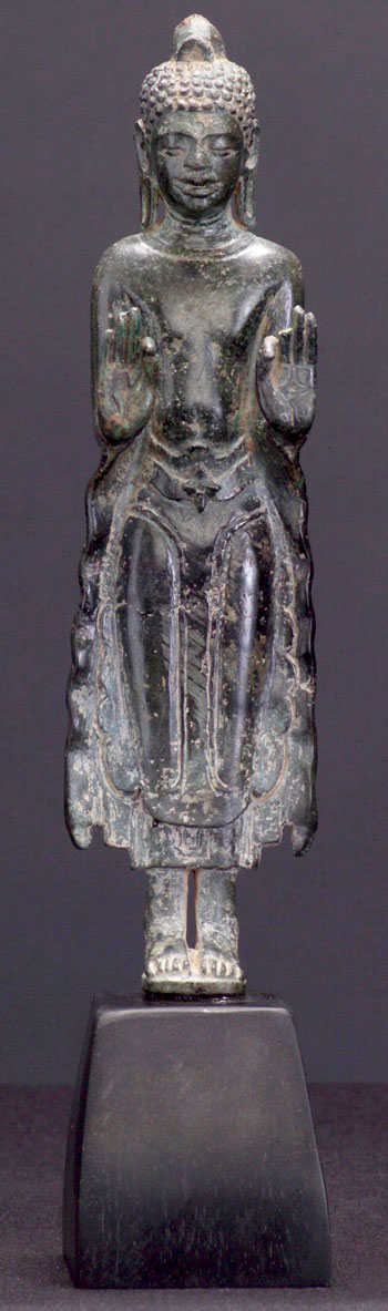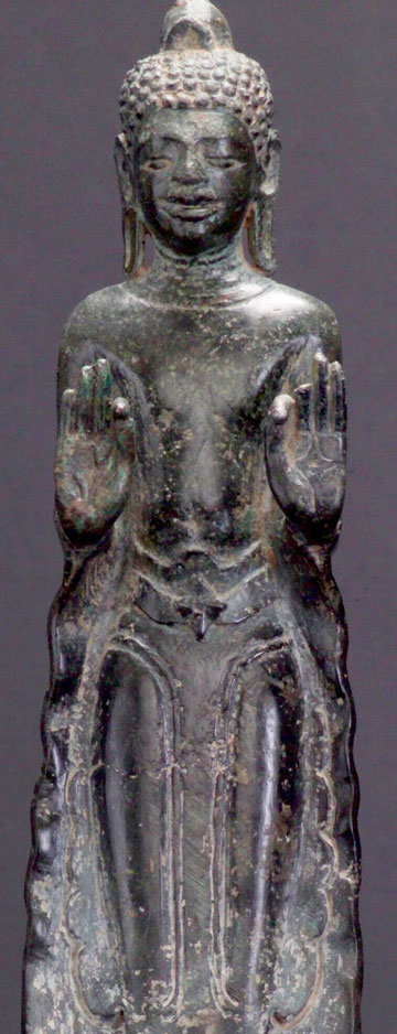 Very uncommon and beautiful Buddha- The face and patina are incredible. This highly prized smooth green “jade” patina is typically found only on 15-17thC Northern Thai bronzes. I would let this one go for what is basically my cost plus expenses, as I bought it in the heat of the moment- I paid a very reasonable price (although certainly not cheap!!), but I don’t feel right marking this one up. 8-1/8" tall.