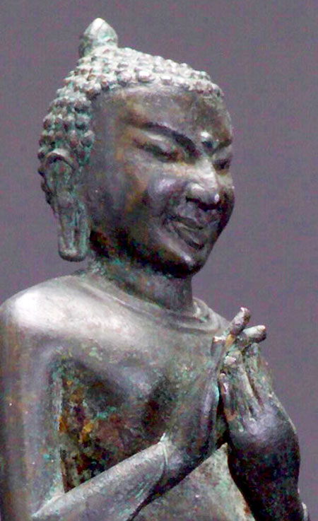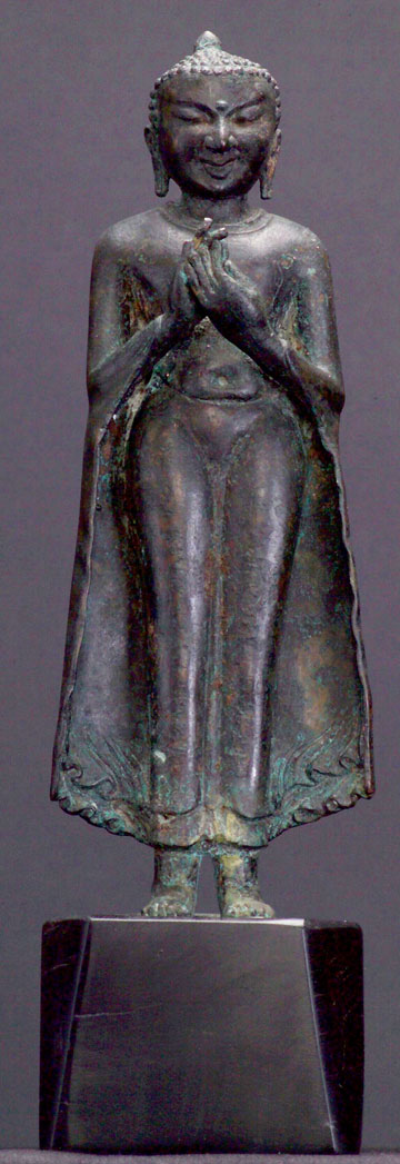 This is a very finely cast classic authentic example. I've gone through many catalogues, and found very few which were of this “high” style with this very angular face that were of comparable quality. Very special! 8.75" tall.