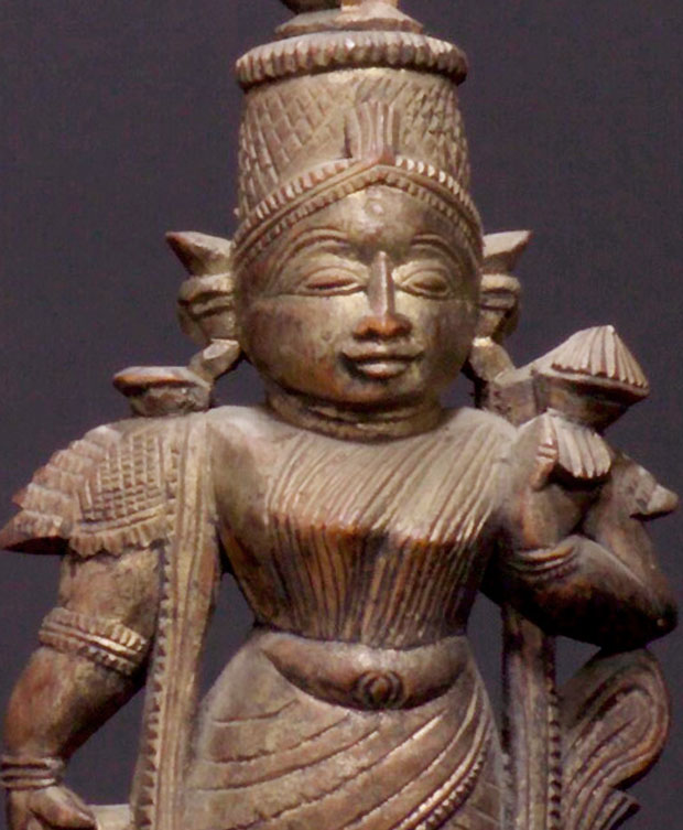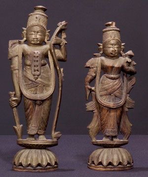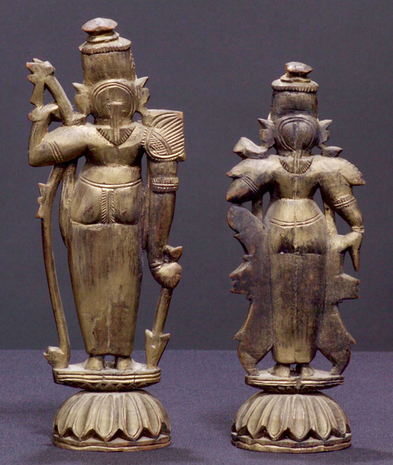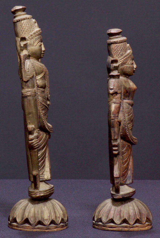Pair of very well carved antique Hindu figures. Remains of gilding. Very reasonably priced given their quality. Some loss as can be seen in the photos. Beautiful faces. 7.5" and 6-7/8" tall.