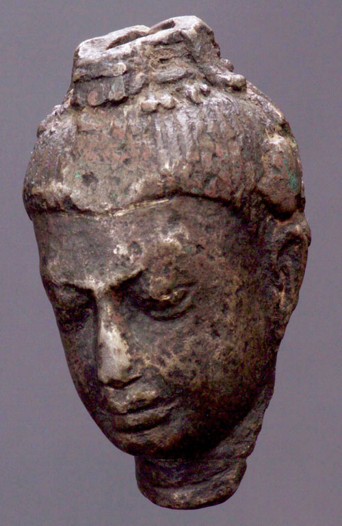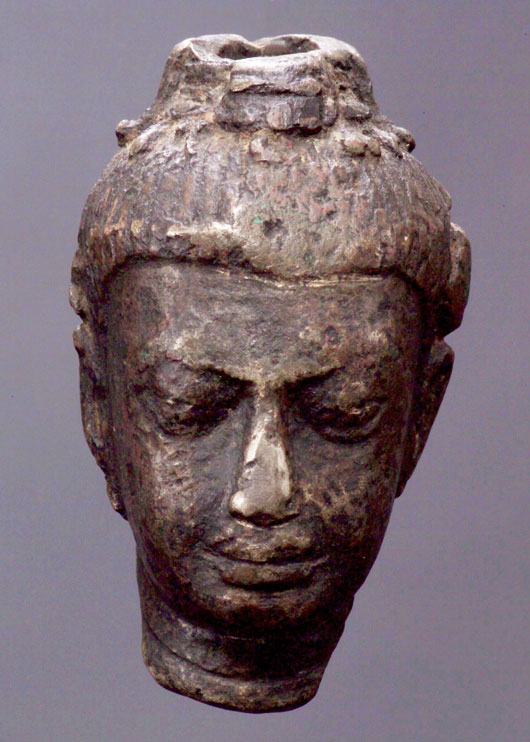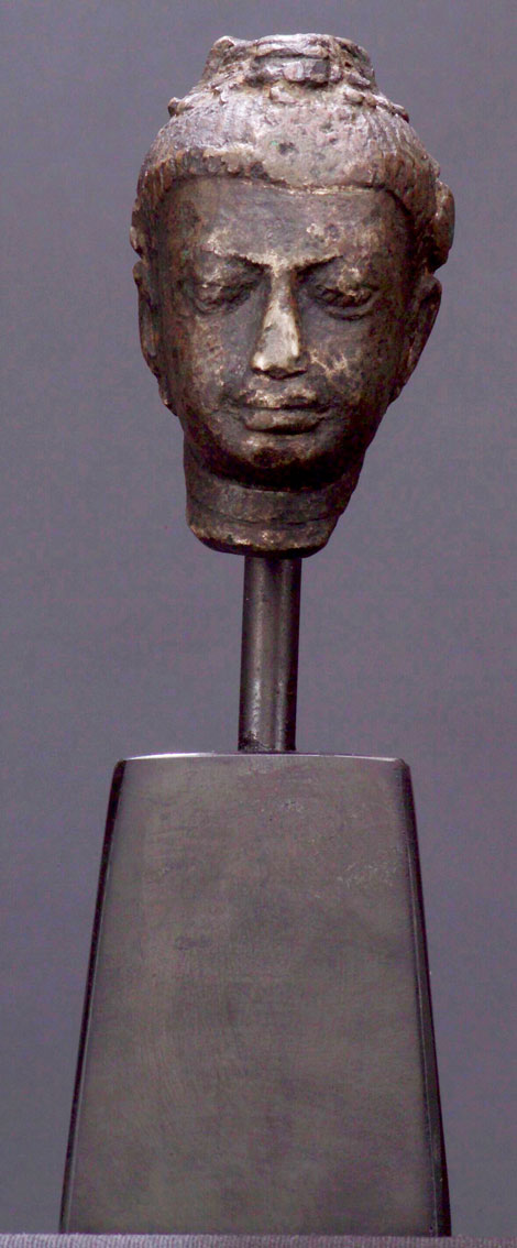 Earliest of SE Asian Buddhist art. Unsure of exact origin. This one needs study. Strong Indian influence. 3" tall (head only). The base in the photo is not included.