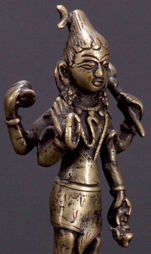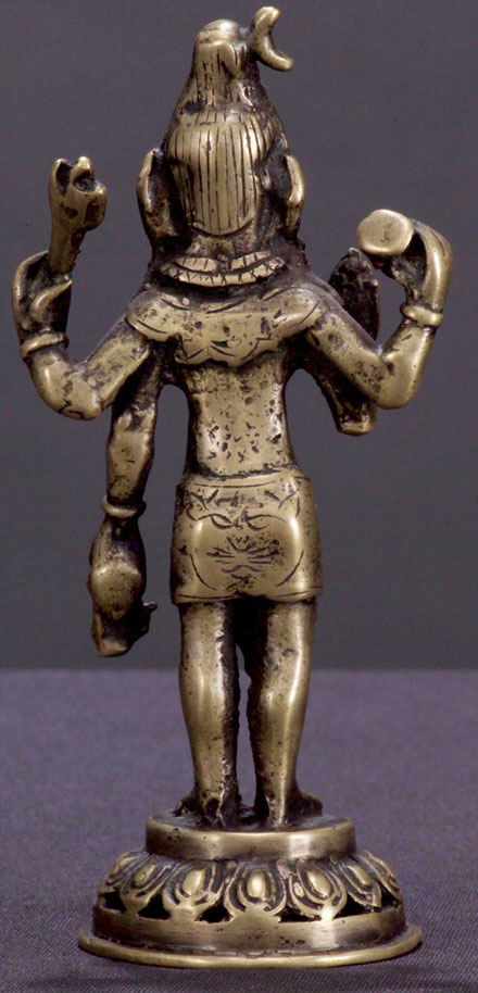 Shiva, with four arms and the moon in his hear- probably the sweetest Shiva I’ve ever owned. Very well cast and sculpted. Has a face which captures a depth of serenity not usually found on this type of piece. At first I thought he was Indian (solid cast, some stylistic elements), but the base is quite typical of Nepal. Possibly from somwhere in the foothills near the border. Wonderful! 5.75" tall.