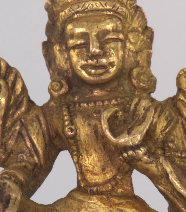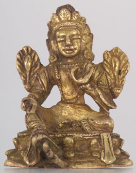 One of a large group of antique miniature Buddhas I’ve collected over the years. This is a Tibetan or Mongolian gilded Boddhisattva, probably close to 100 years old. 1.5" tall. Very nice presence