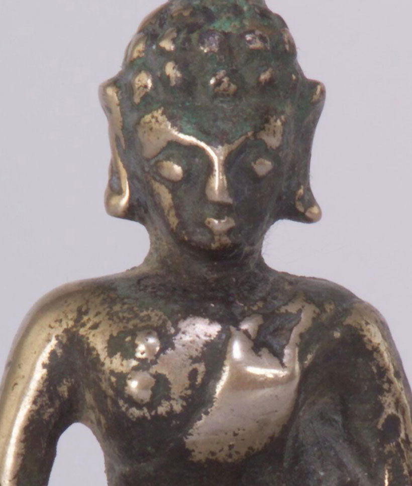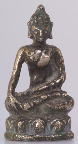 This is from my personal collection of miniature Buddhas. He looks to be 15thC or earlier, and to be thickly cast of silver. Extremely uncommon. Has a power to him which is palpable. 2" tall.