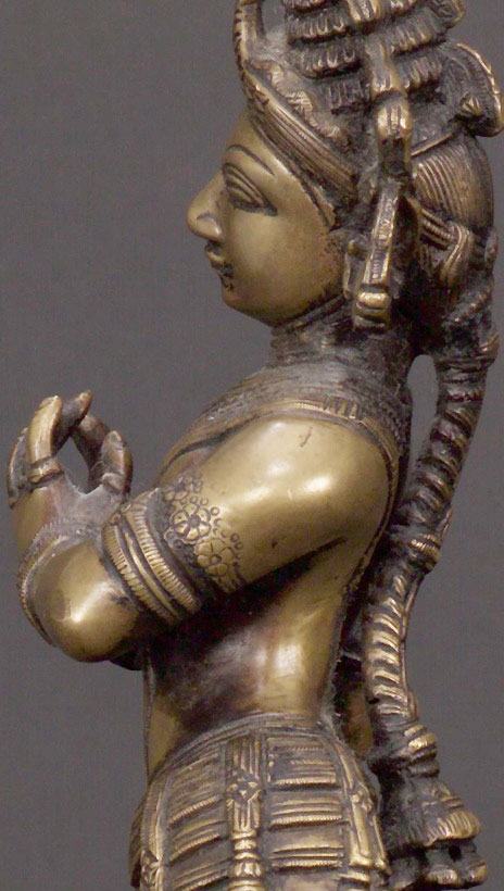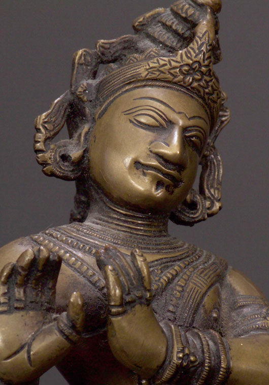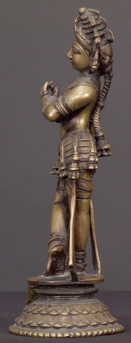 Wonderful Indian bronze Bodhisattva. Very fine detail work- spend time looking at the photos- the lost wax casting on this piece is outstanding. Quite large and heavy. In excellent condition for an older piece- This piece has been in US or UK collections for most of the last century. Special!. Stands 10.75" tall.