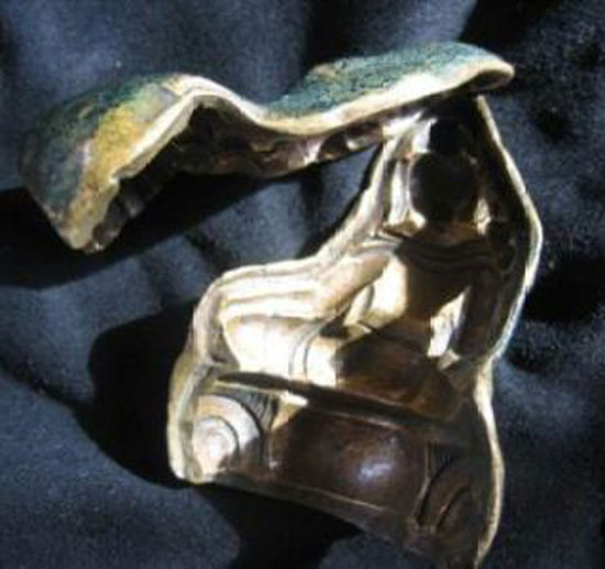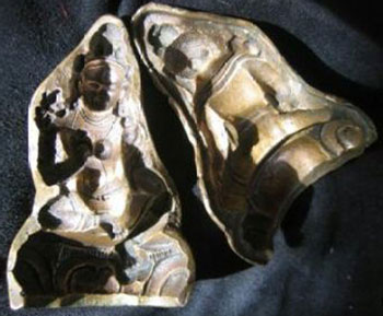Very fine Tibetan Buddha Mold- much finer than the vast majority. Two halves- bronze. Close to 3 inches tall.
