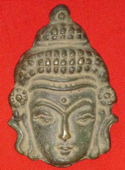 This is an old Mongolian bronze piece I purchased from a collector in Mongolia. It clearly good age, but I don’t know how to date it. The flowers on the sides of the head and the ribbon style suggest a possible early dating. The face is also not like typical Mongolian pieces of the 19/20thth century It is 3.75 inches tall by 2.5 inches wide and fairly heavily cast.