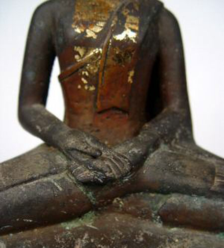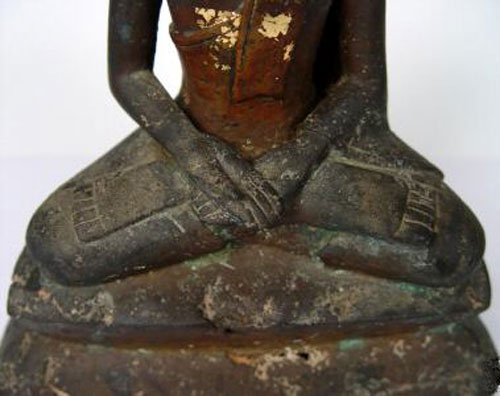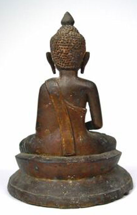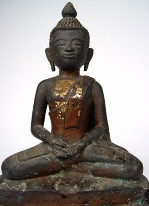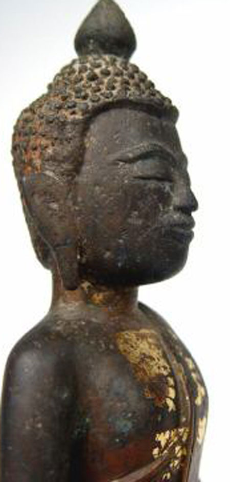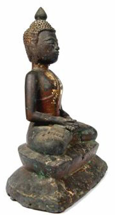 This is a very early Lao Buddha- looks to be early- probably 15th/16th. He is great example-hard to find now- nice sculpting, great condition, untouched patina, very sweet face and wonderful folk quality. A nice size at 8 inches tall, by 6 inches wide at the base, and quite heavy.