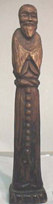 Fantastic, very old wooden monk. Purchased from an estate- the owner had apparently found it along the side of the road near a very old monastery. I do not know more than that. I do not usually buy this kind of piece but I could not resist his superb face. Much darker lower down- looks to have been painted or lacquered originally.