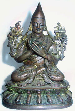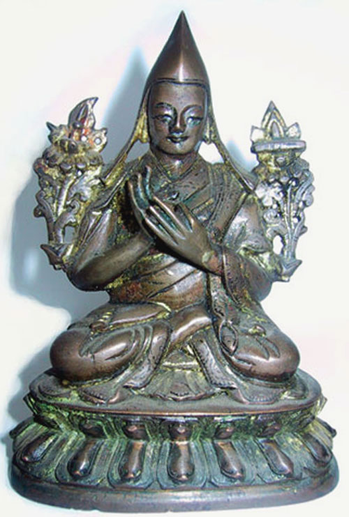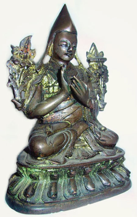 Very fine Tiben or Mongolian sculpture of Tsong-Ka-Pa. Close to 4" tall.