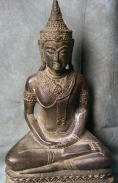 Very nice Thai bronze Buddha- circa late 19th to early 20th century- a very good size at 9 inches tall. Much more finely cast than the majority of this type. He has a really nice feel.