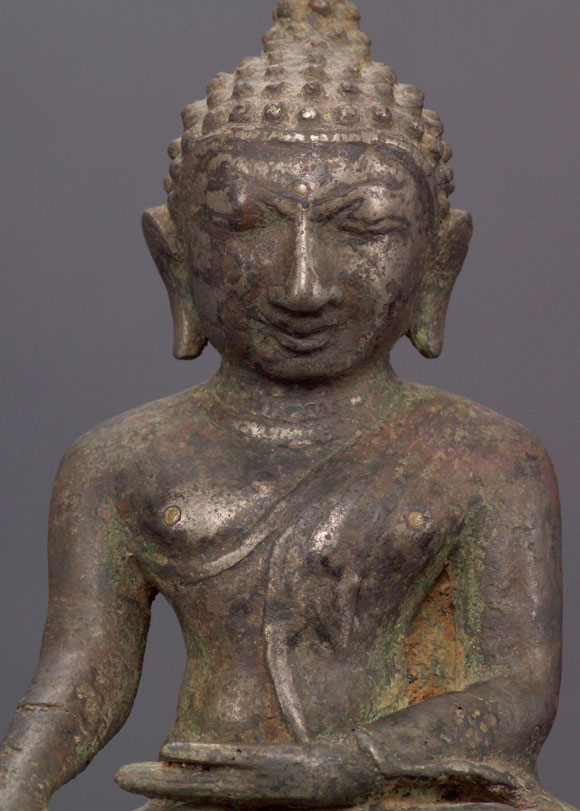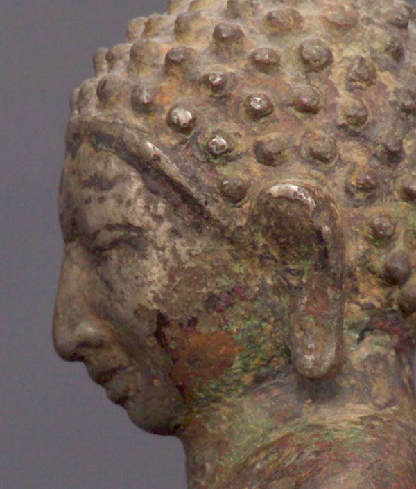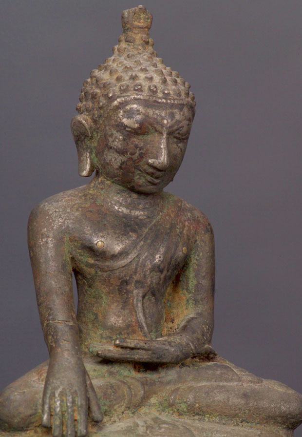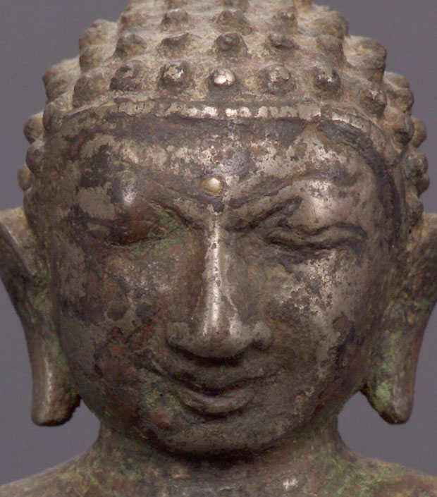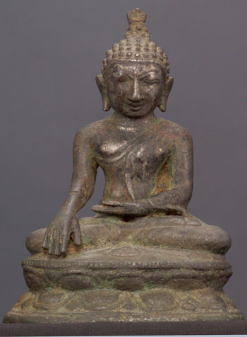 Early Pagan Buddha with a strong Pala influence. This piece is much different than the majority of Pagan pieces which I have posted. It has a much stronger Indian influence. Note the different casting and alloy used. It is also far earlier than most any other Pagan piece I have posted on my site. Wonderful face! 6" tall.