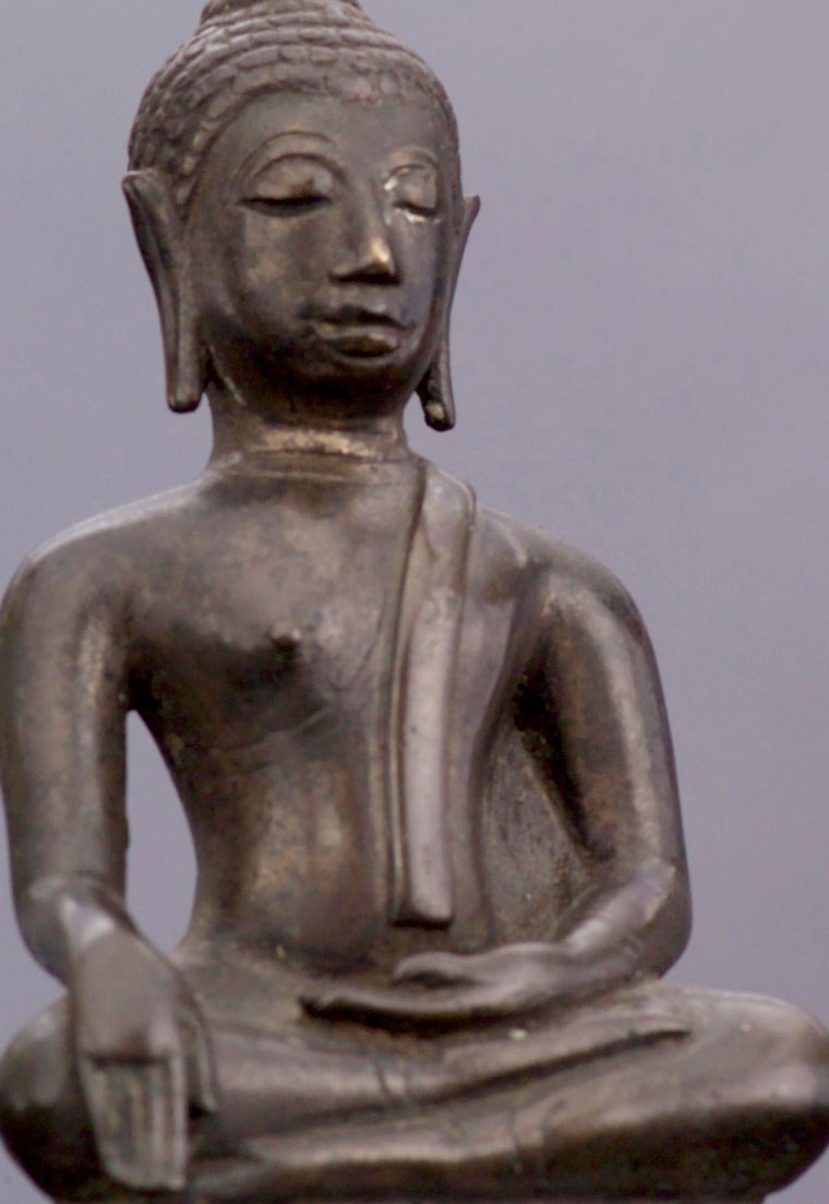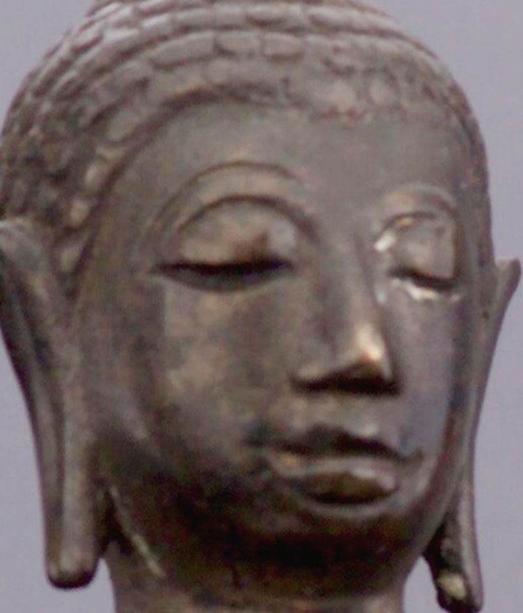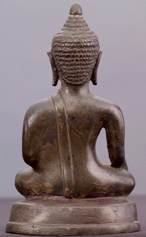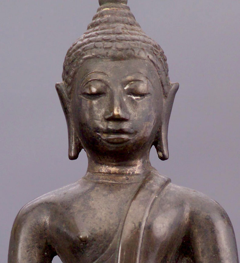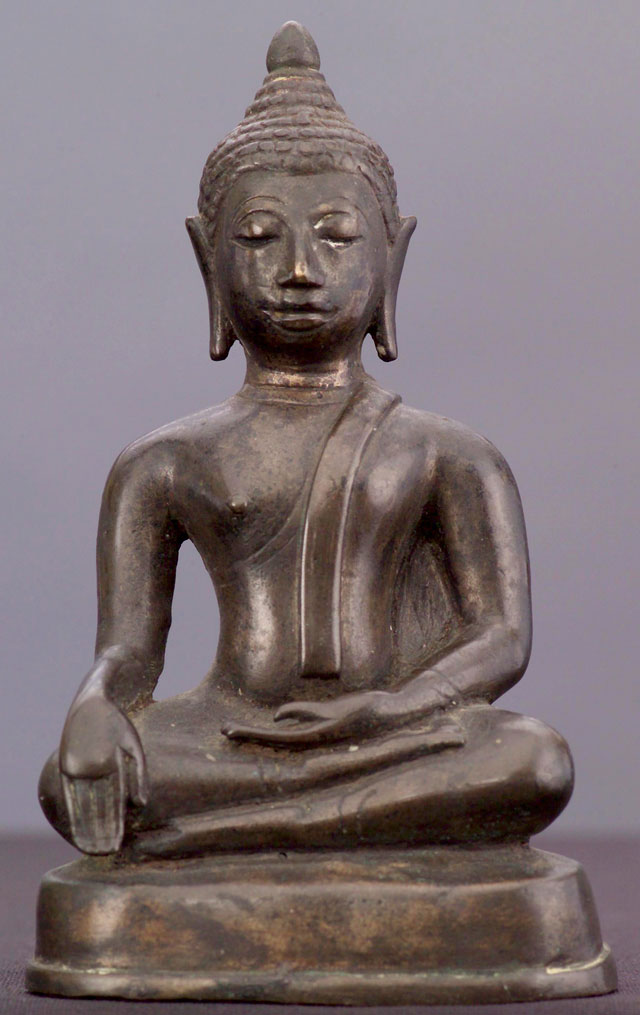 Very high quality 15th-16th century Northern Thai bronze Buddha. This style of Buddha - when everything is right (sculpting, casting, patina, and spiritual feeling) – is extremely sought after by Thai people. This style of Buddha has a special quality and feeling which is hard to describe, but if you look at the photos and sit with them for a while, you may see what I mean. 5.75" tall.