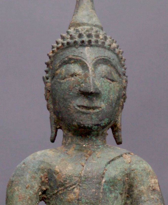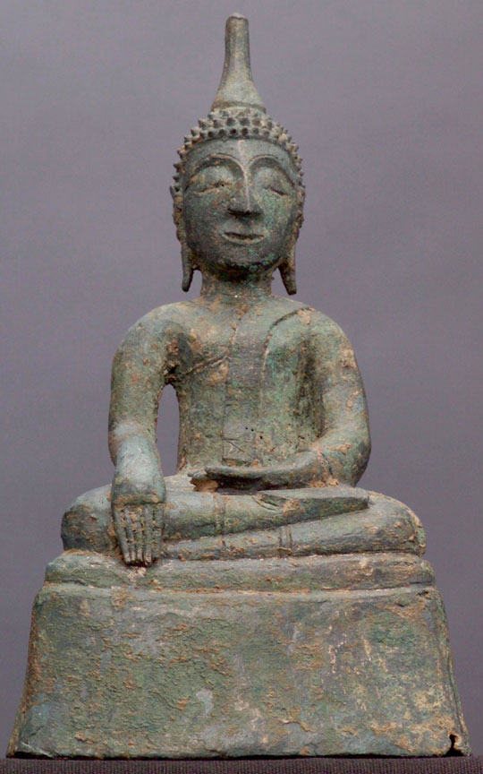 Especially sweet Lao bronze Buddha. He has that "something extra" which is hard to desctibe. 6" tall.