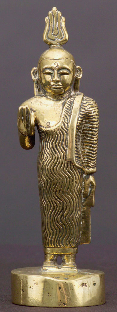 superb and classic Kandy style Sri Lankan Buddha- fine casting, fabulous sculpting, and the very best gilding. Most importantly, he has a deep and powerful spiritual presence. Lankan, along with Korean, are fare rarer and more valuable than other styles of Thai bronze Buddhas. 6.75" tall.