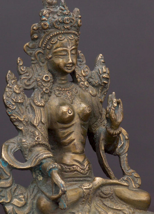 Highly uncommon Mongolian/Russian Bodhisattva. Likely from Buriata, the part of historical Mongolia currently part of Russia- they have their own unique style of bronze sculpture. I've never had one of these before in 20 years of collecting. 5.25" tall.