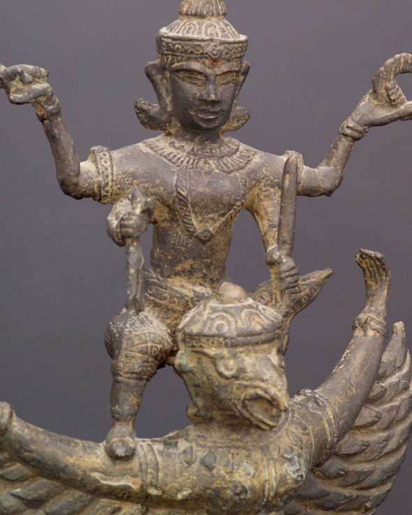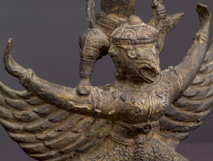 Vintage/old Vishnu atop Garuda. 10" tall.