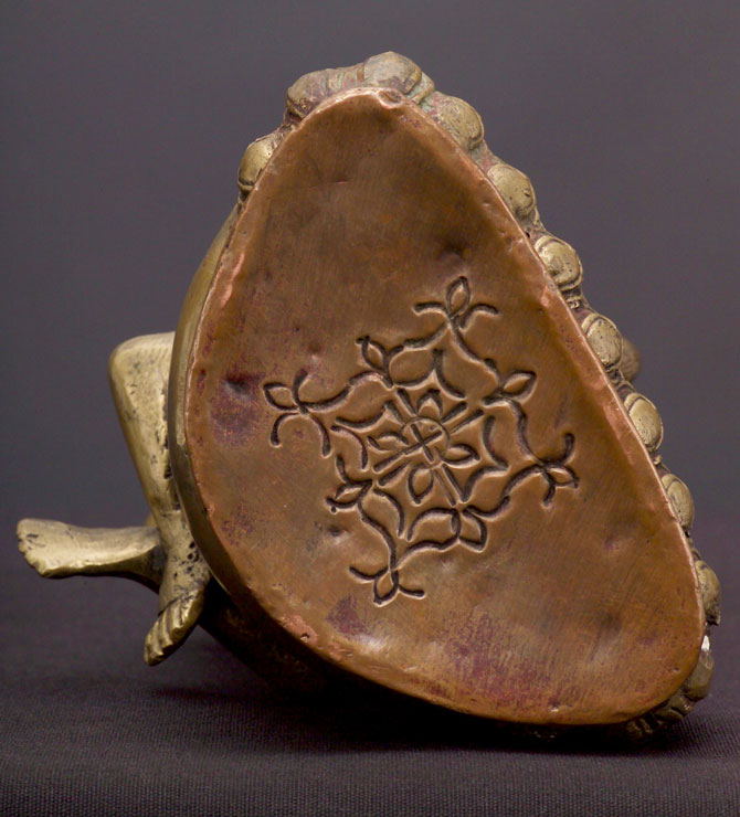 19th to turn of the century Nepalese bronze Buddha and consort in cosmic embrace. The base has what looks to be the original seal on the bottom. This is an authentic older one, not a new repro. 7" tall.