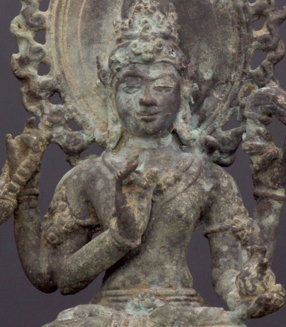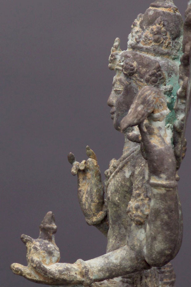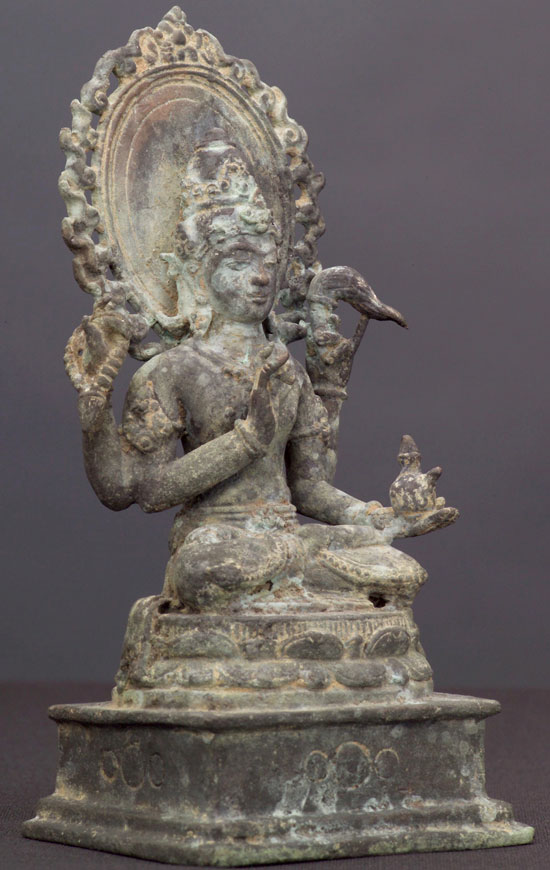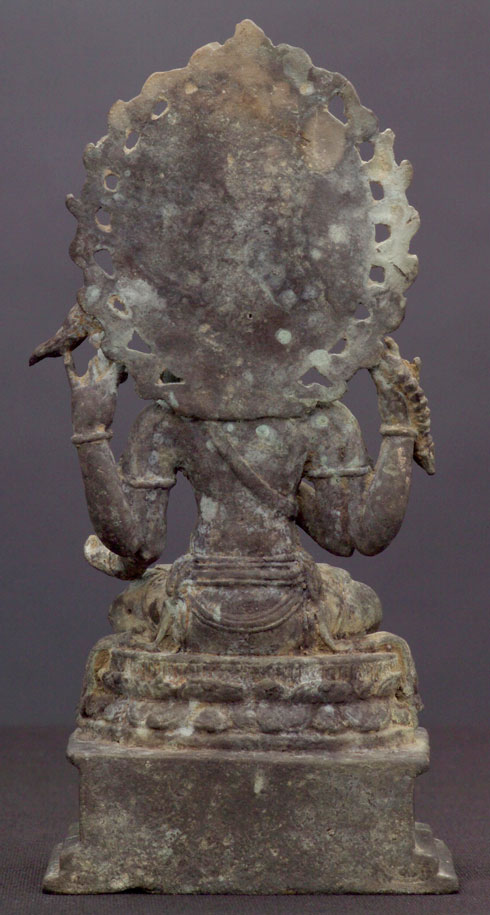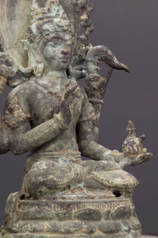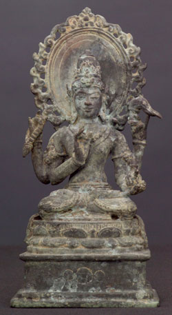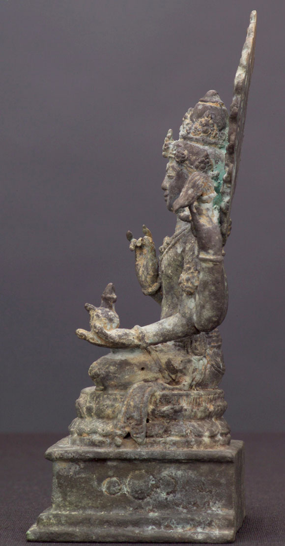 Indonesian bronze sculpture of a Bodhisattva. This piece was purchased from an estate along with the two closely-related Kubera statues which are listed in the same section (#1580 & #1581). 6.25" tall.