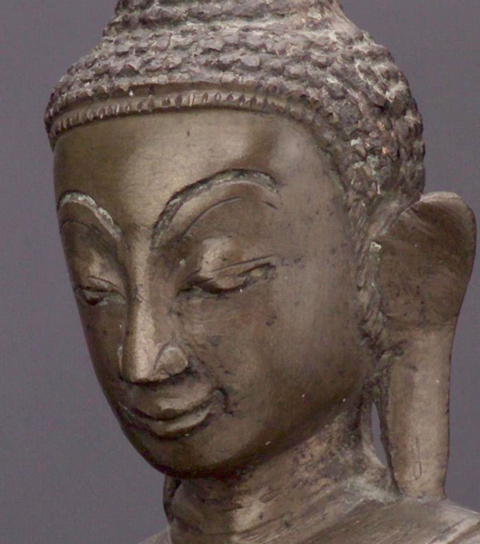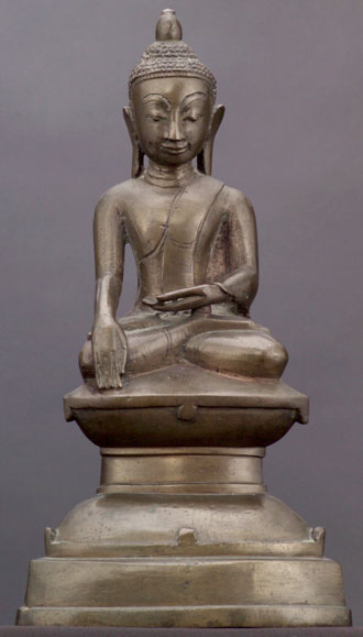 Very good 18thC Shan bronze Buddha. Good size at 11" tall.