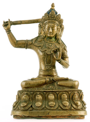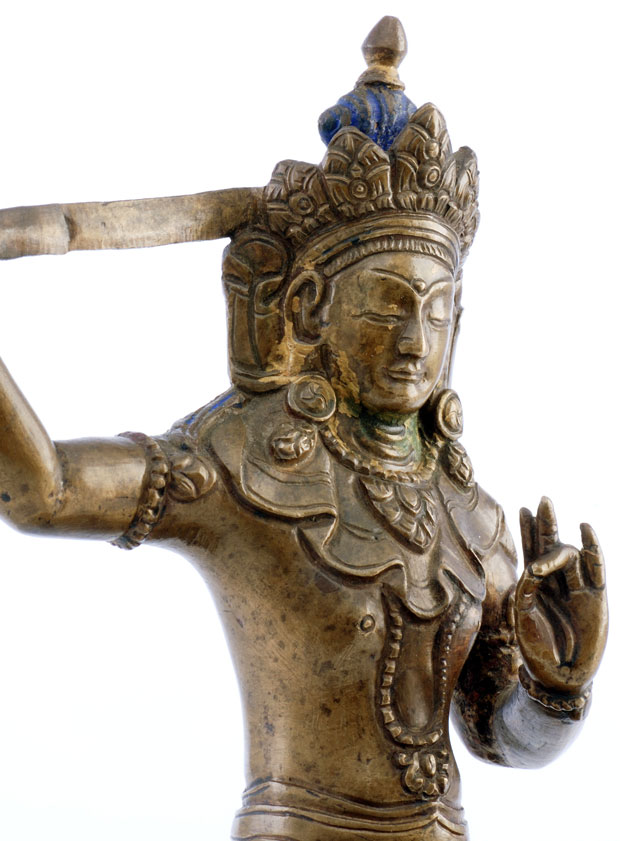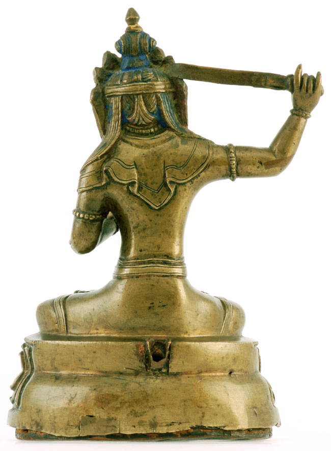 Manjushri. 6.25" tall. He is 16thC at the latest, possibly older. One of the best faces of this type I have seen.