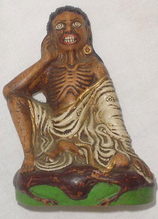 Striking Mongolian depiction of an ascetic Milarepa. About 3" tall.