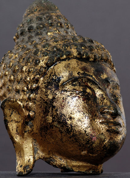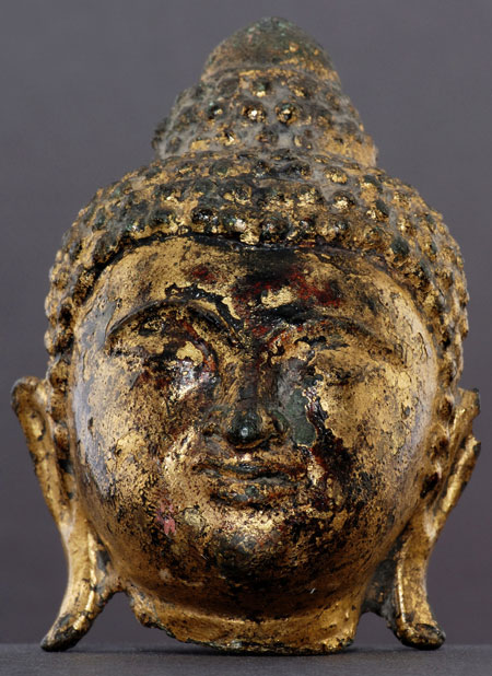 Nice bronze Buddha head. Could use a base. 3-3/8" tall.