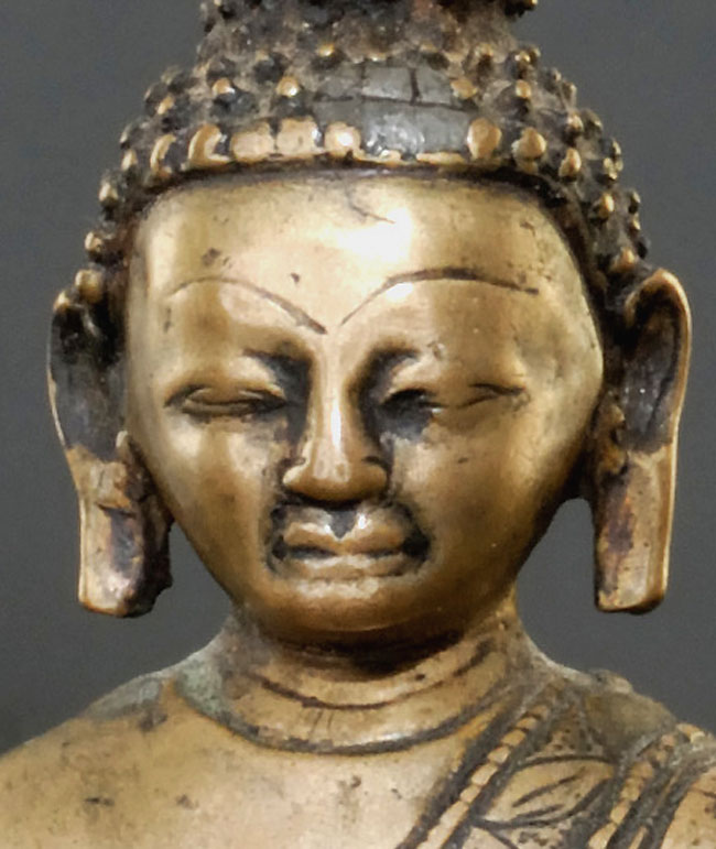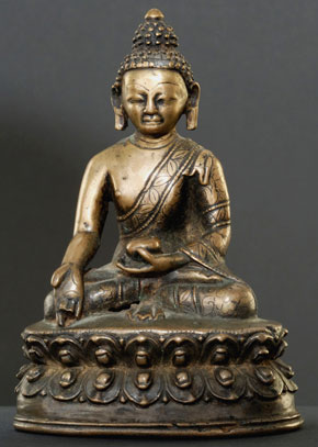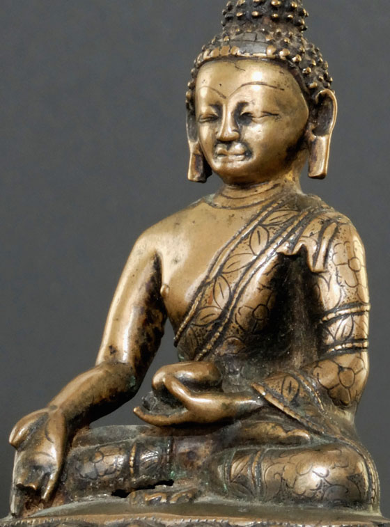 Very sweet Tibetan bronze Buddha. HAs a particularly calm feel. An early type, which is quite sought after. 3.5" tall.
