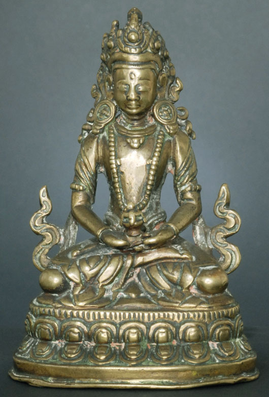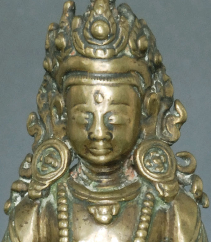 Extremely fine Nepalese Bodhisattva with a fabulous countenance. Looks to be 18th century or earlier. 3.25" tall.