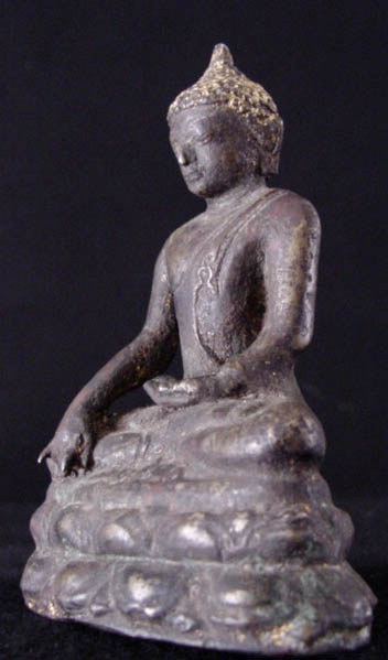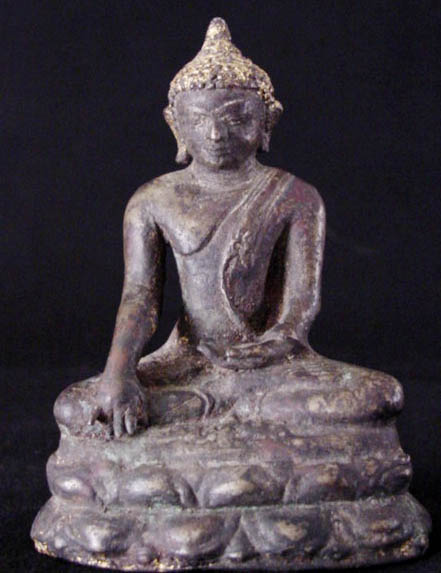 This is a classically designed and crafted authentic Pagan period in Burma., and dates from the 11 to 13th centuries.The patina is fantastic. It has wear related to it's 800 years, but is otherwise in complete condition with no damage or repairs. Most classic Pagan Buddhas you see are copies, or are 18/19thC emulations. This is the real thing. It is 4 and 3/8ths inches high
