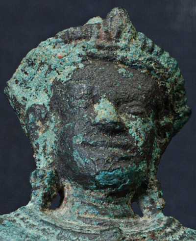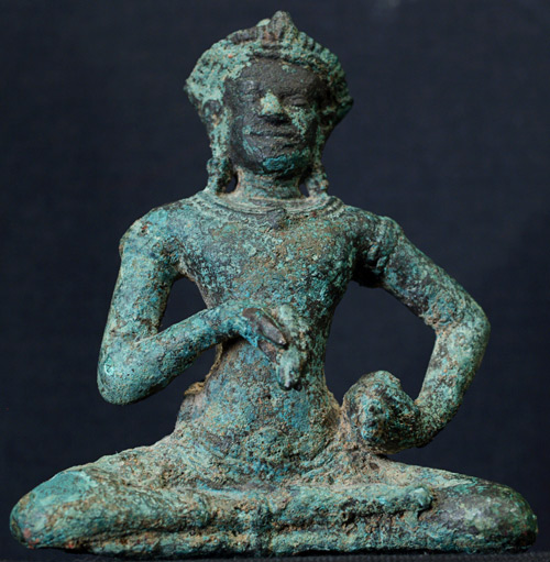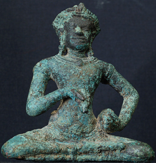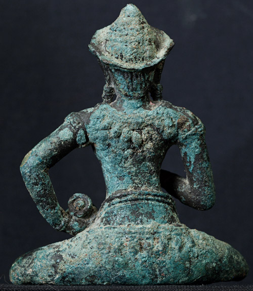 Wonderful Khmer bronze figure- sits on a custom lotus carved stand- (photos of the base to follow). Sits 3.25 inches tall- almost 5 inches tall with the base