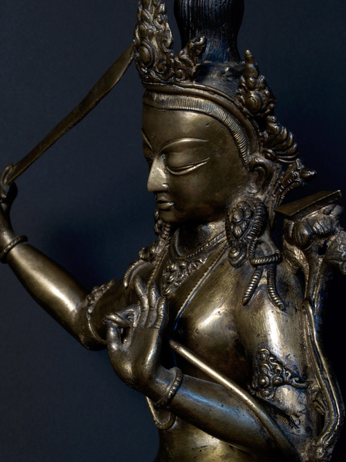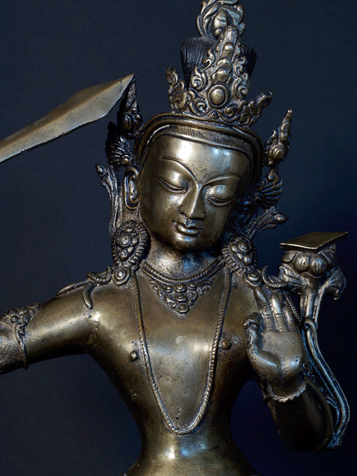 Large Manjushri- Bodhisattva of Knowledge cutting through ignorance with his sword.13 inches tall.