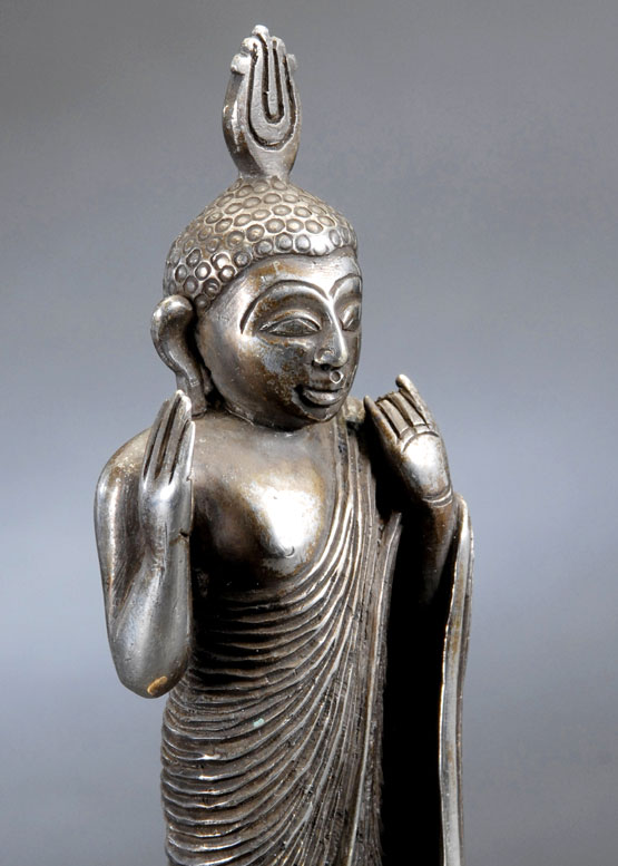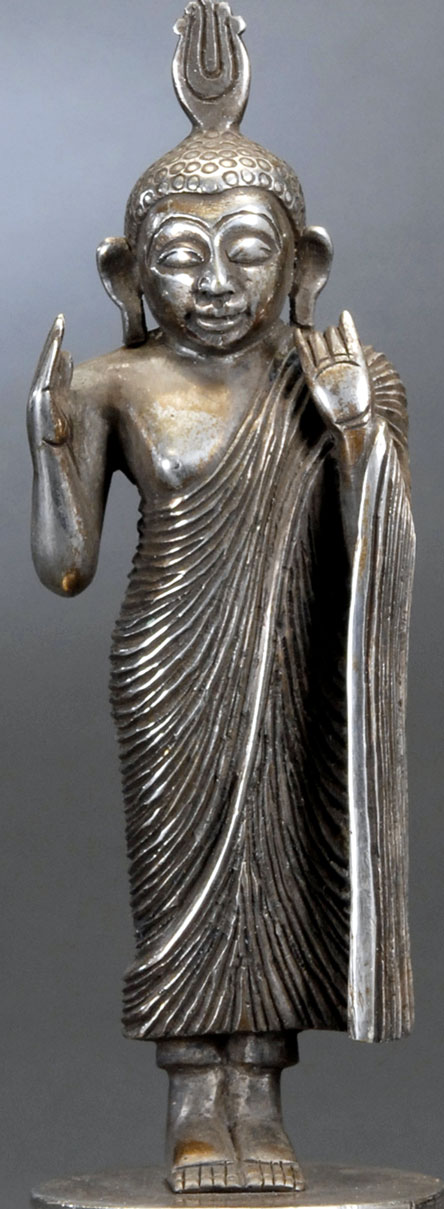Fantastic solid cast silver Buddha from Sri Lanka. Nice size at 7.25 inches tall, and quite heavy for his size. Never seen another like this.