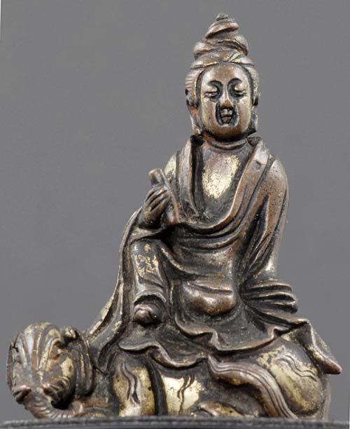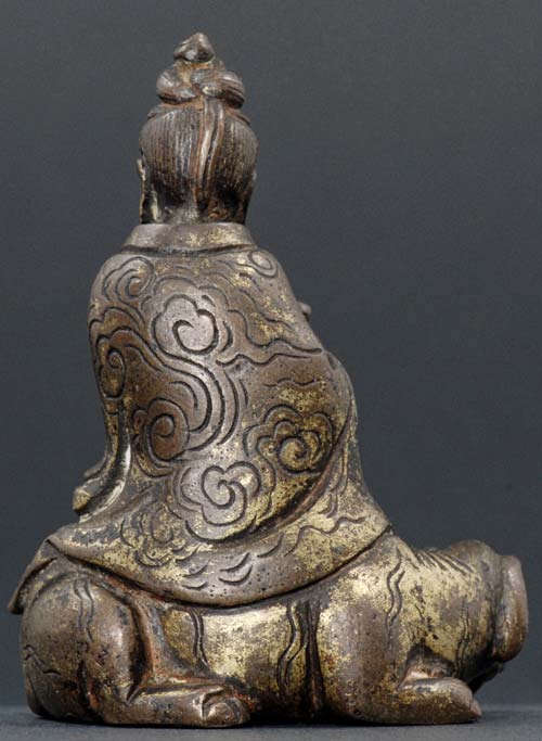 Rare and fine- solid cast miniature Chinese Ming Quanyin on an elephant. Sits 2.25 inches tall.