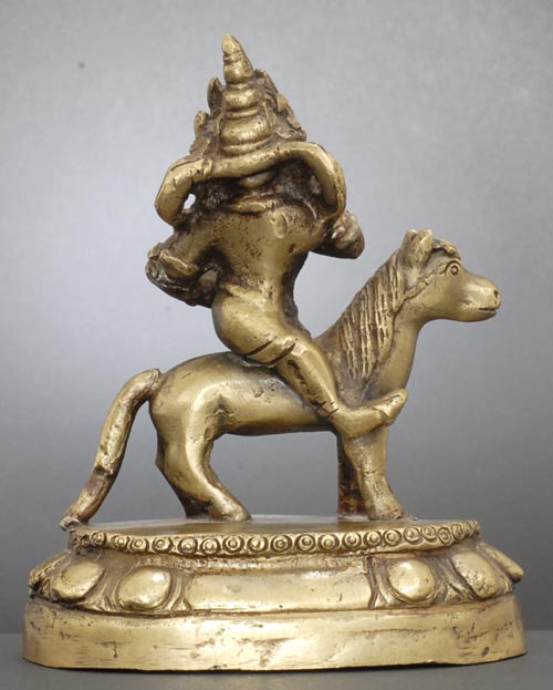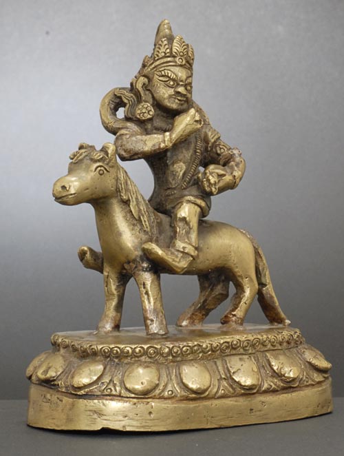 Wonderful Tibetan or Mongolian Bodhisattva on a pony. 4.5 inches tall.