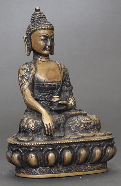Very nice Nepalese or Tibetan Buddha with beautifully detailed robes. 5.5 inches tall.