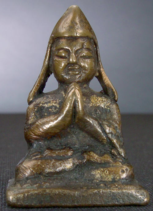 Very nice Tibetan bronze sculpture of Tsong Ka Pa. 2 inches tall.