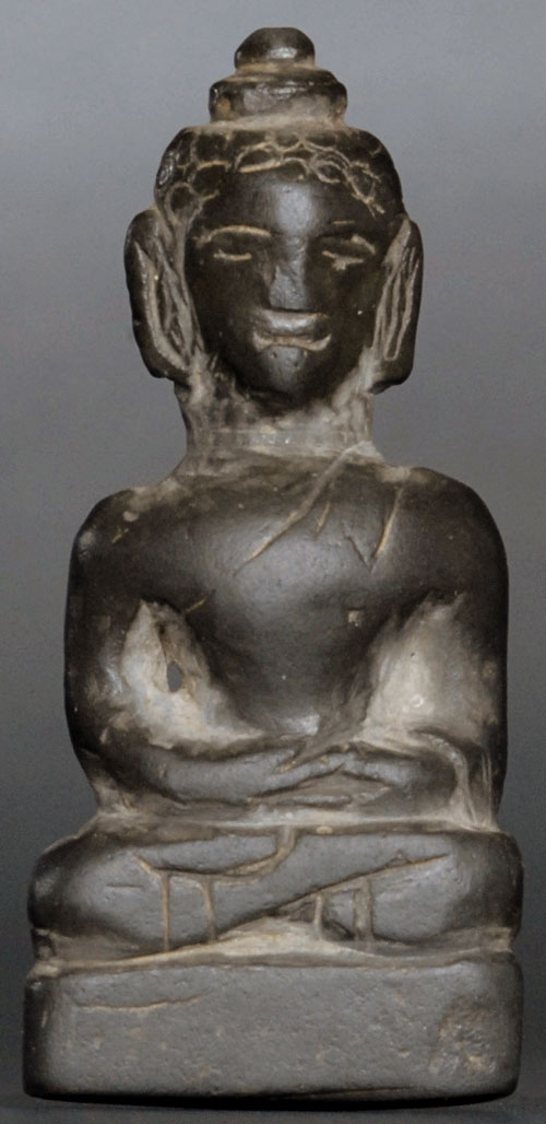 Delightful Northern Thai Buddha carved out of a hard river stone. This is a particularly nice folk example. Sits 2 and 1/8 inches tall.