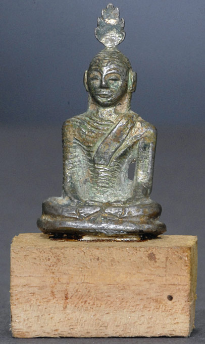 Early Kandy style Bronze Buddha- the smallest of its type I have ever seen. 1.75 inches tall. Wonderful!!