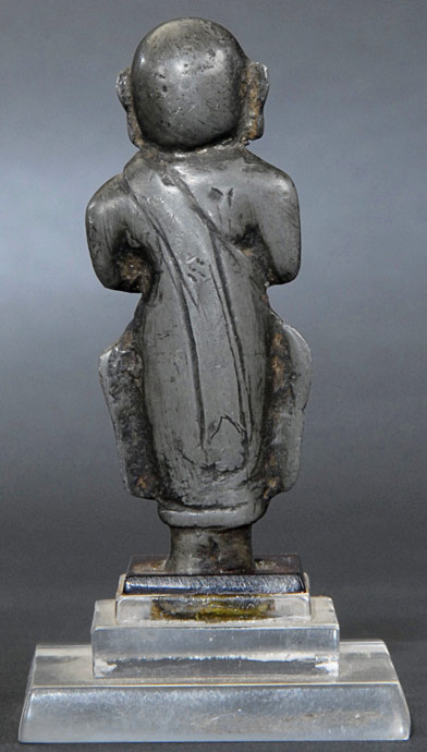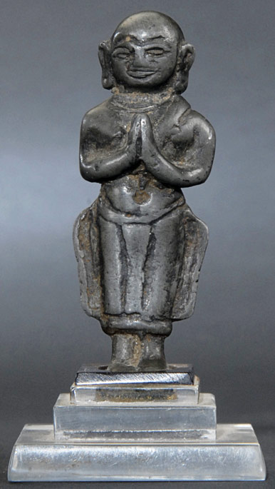 15th-16th century Burmese bronze monk. Rare early Ava style. Measures 3 inches tall.