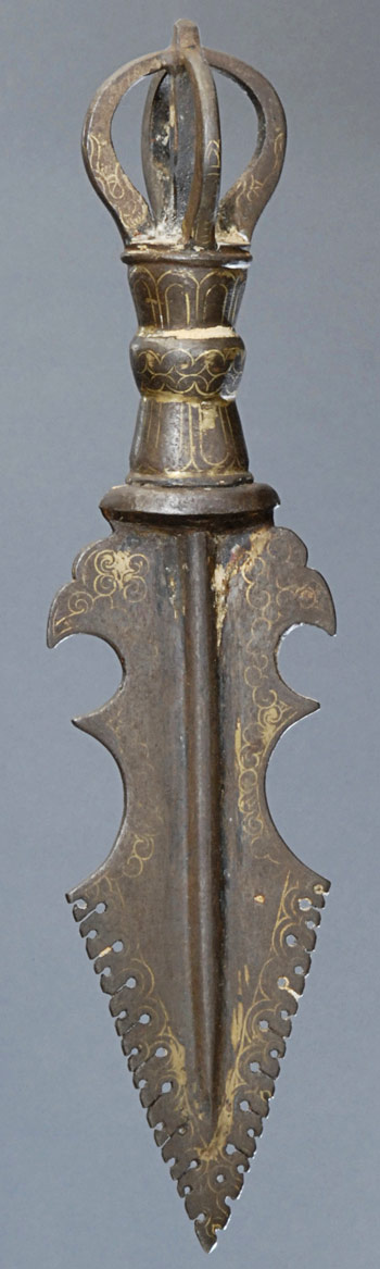 Antique Tibetan Iron Phurba inlaid with gold(?) or other metal. Large, Fine, and powerful!