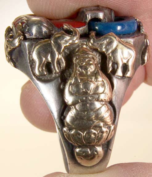 Note the 4 elephants and the 2 Bodhisattvas on the sides, in addition to the main Buddha. This ring has a lot going on!