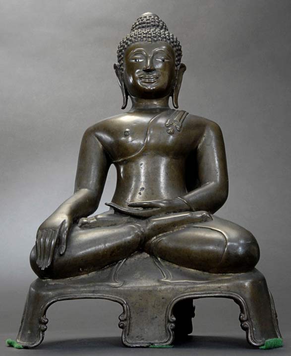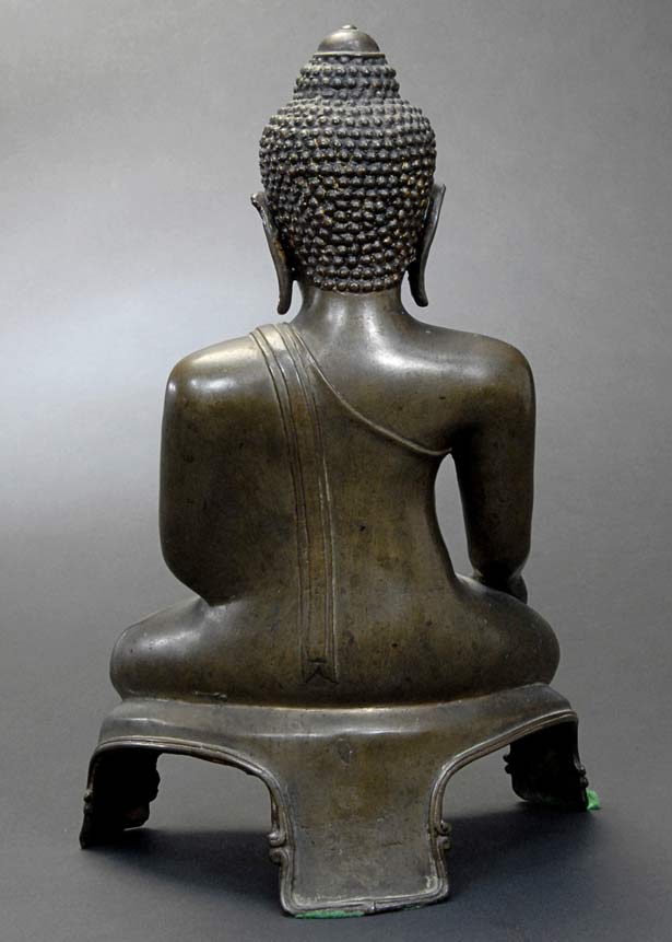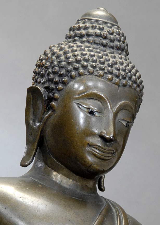 This is a fairly rare style of Thai Buddha known as Kanom Tom- there are examples of this style, interestingly, known to come from the far south and far north of Thailand- but not from in between. It is thought that an example came from the south and was emulated in the north.